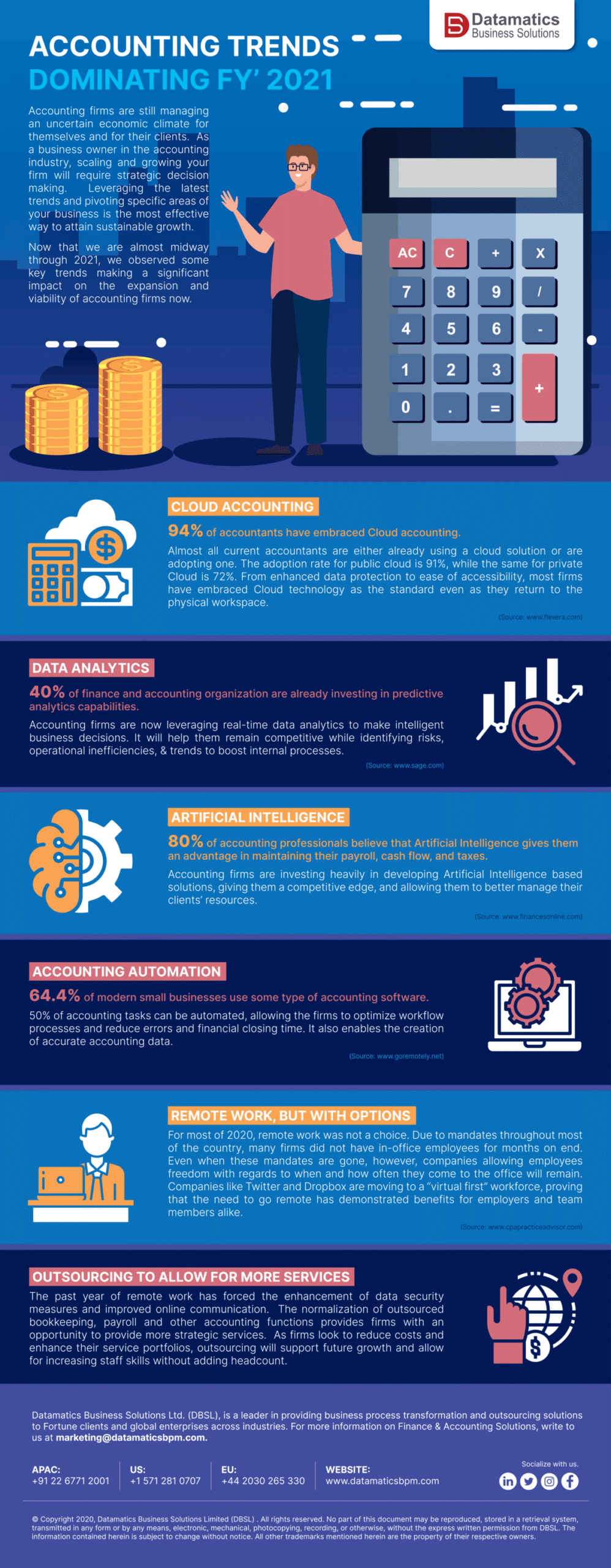 As the FY’ 2021 unfolds, we are seeing the emergence of a plethora of new accounting trends. In our latest infographic, we look at some of those trends, which will help the businesses get ready for the future and dominate the finance & accounting space for the long term.
